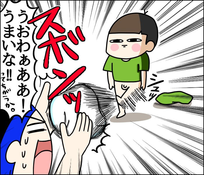 ママも顔に当たらなくてキャッチ!