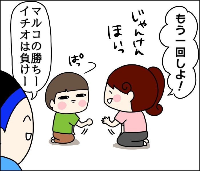 じゃんけん 2018/06/21 カテゴリ:マルコ小学生イチオ2歳 このブログは家族の日常を絵日記にしています。初めましての方は…ブログ紹介ページへ☆**************姉マルコ6歳**弟イチオ2歳9ヶ月*勝っても負けても大喜びでした。*************前記事コメントお返事してます~(´∀`) 「マルコ小学生」カテゴリの最新記事 「イチオ2歳」カテゴリの最新記事 < 前の記事次の記事 > コメント コメント一覧 (8) 8. 議加 2018/06/22 12:53 いつも、楽しい投稿ありがとうございます私自身は九州ですが、私の旦那が広島で仕事してるので、私も本通とか出没しております(笑) 現在、小さな病気で凹んでいましたが投稿を読ませていただいて凄く元気になりそうです(*´꒳`*) 0 kumahahamoyou がしました 7. Kei 2018/06/22 09:18 凄く伝わります(笑) 可愛い~~っ 0 kumahahamoyou がしました 6. ゆーたん 2018/06/21 23:11 まだ勝敗わからないうちが一番かわいい(笑) うちの息子は少し前まで、朝の某情報番組のじゃんけんで同じのが出ると喜んでました(^o^;) 0 kumahahamoyou がしました 5. まいたけ 2018/06/21 22:07 だからサザエさんか~www 細かい仕掛けをありがとうございます(≧∀≦) 0 kumahahamoyou がしました 4. minasachimo 2018/06/21 21:12 うちの孫は 自分が負けても 僕の勝ちー!ですw イチオ君かわいい♩ 0 kumahahamoyou がしました 3. きっこ 2018/06/21 19:36 サ◯エさん… じゃんけんと言えば… サザ◯さんですよね笑 0 kumahahamoyou がしました 2. なお 2018/06/21 18:55 髪型変えたんですか?笑 0 kumahahamoyou がしました 1. 0926runrun 2018/06/21 17:30 大爆笑しました イチオくん最高です(≧∇≦)b 0 kumahahamoyou がしました コメントフォーム 名前 コメント 記事の評価 リセット リセット 顔 星 情報を記憶 コメントを投稿する