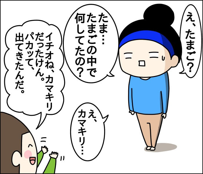 2歳に胎内記憶を聞こうとしてみたら… 2018/05/16 カテゴリ:イチオ2歳 このブログは家族の日常を絵日記にしています。初めましての方は…ブログ紹介ページへ☆**************イチオ2歳8ヶ月*…ファンタスティック!!会話がもう何が何だか(笑)タイトルの胎内記憶どこいった!!また忘れた頃に…3歳過ぎた辺りで聞いてみようかなと思いました( ´艸`) 「イチオ2歳」カテゴリの最新記事 < 前の記事次の記事 > コメント コメント一覧 (11) 11. いちまるらぶ 2021/05/06 22:50 まるちゃん、いちおくん大好きです❤︎いちおくんの胎内記憶、久々に見返して笑ってました。今ならなんで答えるのかなーと^_^お兄ちゃんになったいちおくんにぜひ聞いてみてください★これからも応援してます! 0 kumahahamoyou がしました 10. 通りすがり 2021/04/19 03:09 ツミキをツキミと空見して、渋ぅ〜と思ってしまいました。 0 kumahahamoyou がしました 9. むー 2018/05/17 08:20 おはようございます。むーです。 うちの子どもたちもお腹の中は、赤かったと言っていました。 一人目の出産は相部屋だったのですが、仲良くなったママは帝王切開で、上の子に胎内記憶を聞くと、突然明るくなって、ビックリしたと言っていました。 面白いですね! 0 kumahahamoyou がしました 8. ゆーま 2018/05/16 23:21 イチオくんのカマキリ姿が香川照之さんに見えてしまいました( ´∀`)笑 私もあと数日で3歳になる娘に胎内記憶を聞いたら「ママのお腹トントンしてたー、お腹の中好きくない」って言ってました(^^) 0 kumahahamoyou がしました 7. いりこ 2018/05/16 22:48 おふろの湯船に浸かりながら聞くのがいいそうですよ~! 0 kumahahamoyou がしました 6. リもきゃン 2018/05/16 22:02 イチオの誕生、面白すぎて今日も爆笑させていただきましたm(_ _)m有難い これからもイチオネタ多めでお願いしたいです!www 0 kumahahamoyou がしました 5. CK 2018/05/16 20:44 うちは三人子供がいますが 三人とも胎内記憶言いました‼すごいですよね〰‼ でも………私が覚えてない……… もったいなーい‼‼くまははさんは、マンガで残してください❗ 0 kumahahamoyou がしました 4. ℝ♀♬ᴶ³¹ 2018/05/16 17:01 رائععع 0 kumahahamoyou がしました 3. めぐすけ 2018/05/16 14:05 たまご...笑。かわいいです(*^-^*) 最後のカマキリ姿も萌えます~⭐ いつか教えてくれるといいですね...ね!(←ざっくんチョベルカー音声大好きです♪) 0 kumahahamoyou がしました 2. ネコおやじ 2018/05/16 14:00 なんてこった…! あぁ、なんてこった!! 面白い! なんてこった!! 0 kumahahamoyou がしました 1. まっこう 2018/05/16 13:53 いちおくん、まるちゃん、ホンとにかわいいですね~~~(*^^*) 「ばあば」の気分で読ませていただいてます。 0 kumahahamoyou がしました コメントフォーム 名前 コメント 記事の評価 リセット リセット 顔 星 情報を記憶 コメントを投稿する