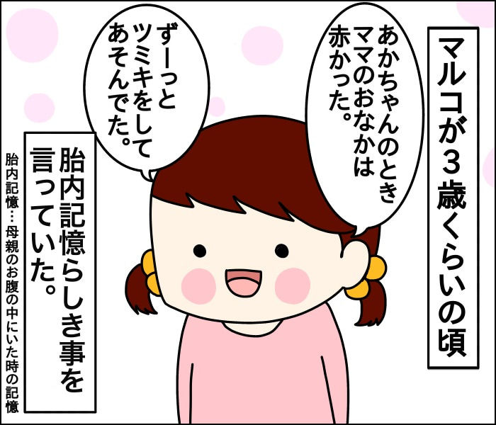 私もあと数日で3歳になる娘に胎内記憶を聞いたら「ママのお腹トントンしてたー、お腹の中好きくない」って言ってました(^^)