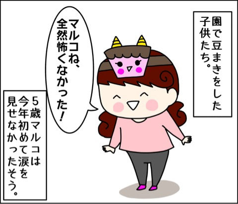 娘は今年初めてちゃんと鬼を認識したようで泣き叫び、逃げまわり、パニックになってました( ´∀`)