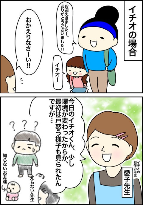 新年度スタート② 2017/04/03 カテゴリ:イチオ1歳 こんにちは~!新年度がスタートしたという事で今度はイチオの初日の様子です^_^一つ目の記事↓(マルコの初日はこちらから☆)イチオ、先生を試す初日にまずやったこと…先生に怒られる境界線の見定め。一日中先生を試す事に全力を注いでいたらしく「試し行動」っていうみたいです。とりあえずこれから一年間いろんなことがありそうです(^_^;)こんな感じで初日は終わったのでした(*´ω`*) 「イチオ1歳」カテゴリの最新記事 < 前の記事次の記事 > コメント コメントフォーム 名前 コメント 記事の評価 リセット リセット 顔 星 情報を記憶 コメントを投稿する