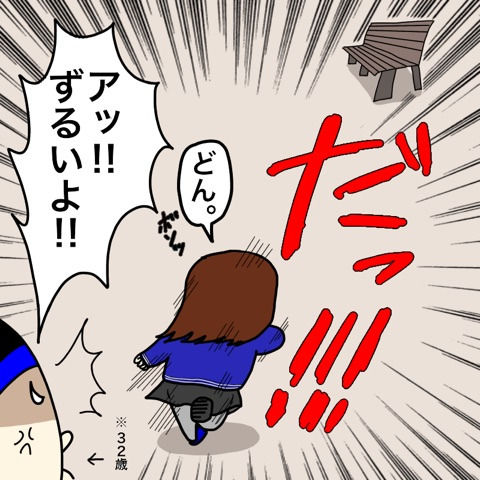 私も足めっちゃ遅いけど、子どもには負けんわ‼って同じようにムキになってやって転倒しそうです…。