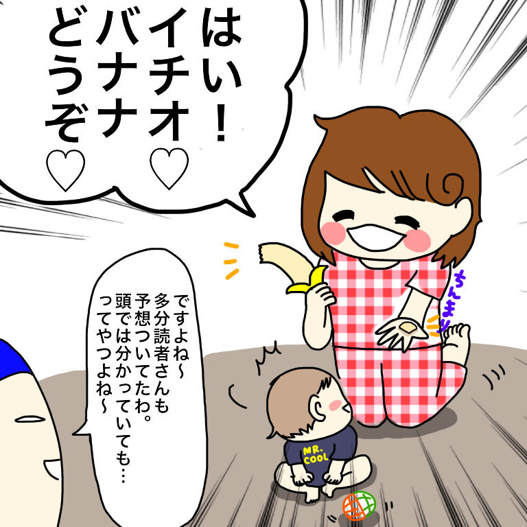 大好きなバナナをちょびっとでも分けてあげようとしたマルコちゃんは優しいと思うのよ…(*´∀`)イチオくんのこと大好きなだけあるね!!