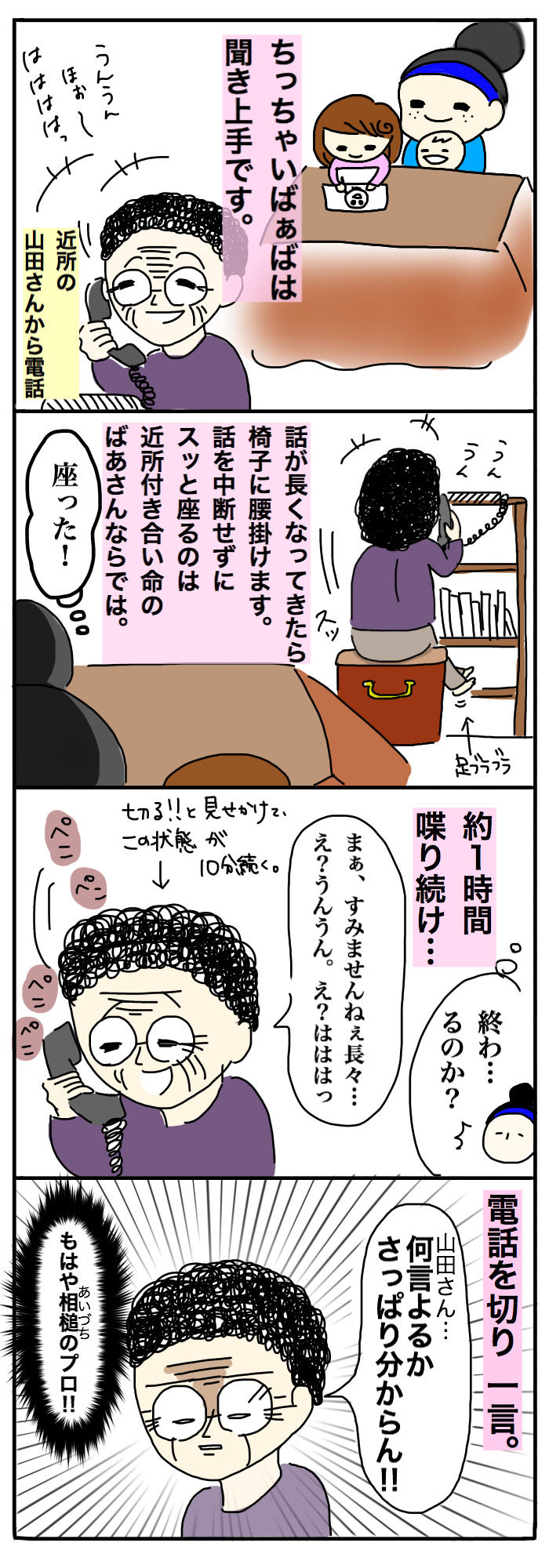 片方が喋るときは適当な相槌で話を聞いている(フリをしている)片方のばあさん。