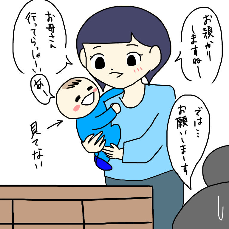 イチオが泣いて→大丈夫だよ!ママあとで迎えに来るからね♡