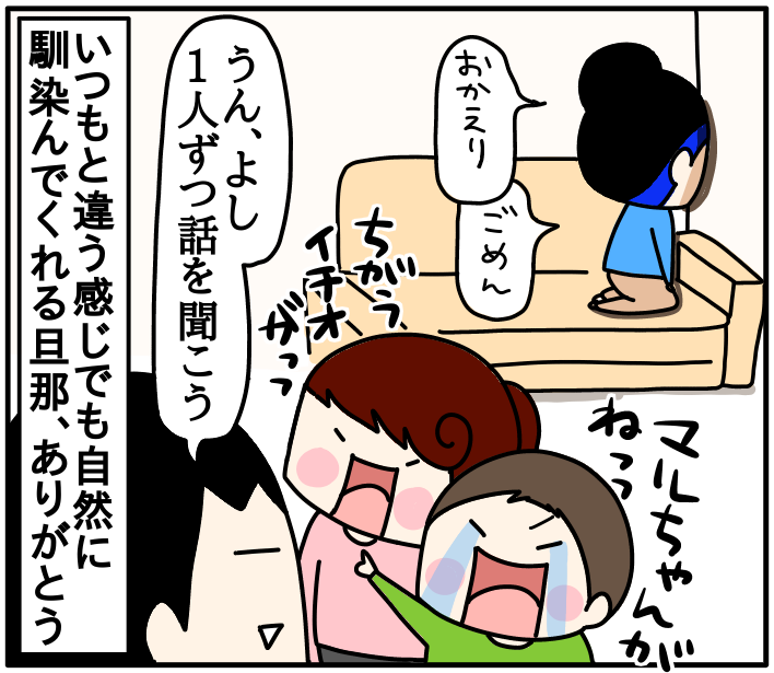 旦那に助けられる時 2019/03/14 カテゴリ:旦那のことくま母のこと 1人ずつパパに話を聞いてもらい落ち着いた子どもたち、と私(お前もかい)とりあえず私は早々に復活。子どもたちも少し落ち着いたかな?時期的なものなのか、様子見ていこうと思います(*´ω`*)ぼちぼちいこうその他旦那の記事はコチラ↓本日1回目の記事はコチラ↓【お知らせ】読者登録後の更新通知についてやっぱり通知行ってない方いた!!コメントありがとうございます!すみませんでした😖🙏初めての方は→ブログ紹介ページへ ツイッターは→こちらから☆インスタグラムは→こちらから☆ 「旦那のこと」カテゴリの最新記事 「くま母のこと」カテゴリの最新記事 < 前の記事次の記事 > コメント コメント一覧 (4) 4. たかしファンA 2019/03/18 14:52 小さい頃を思い出します、ニコニコ。…懐かしい。 0 kumahahamoyou がしました 3. うに 2019/03/15 14:28 パパ偉い!! ウチのパパも率先してやってくれる時もありますが、やらない時は子供が『パパがいい』と言ってもやらない時はやらない💢 たかしさんみたいにスマートにやってくれるパパ、羨ましいです😊 くま母さんの頑張りを理解しているんだなぁ💖といつもブログ見てて感じます。 0 kumahahamoyou がしました 2. カナ 2019/03/14 23:30 こんばんわ☺️ ブログお引っ越しされたその日から登録させていただいたのに全然通知来ないのであれ?って思ってました~😭 オフになってました😭 これからも楽しみにしてます。 通知来てなかった分、今から読みまーす☺️ 0 kumahahamoyou がしました 1. ゆうこ 2019/03/14 21:43 通知来て、即読みましたー♪ 因みに、お風呂上がりなので、髪の毛濡れたまま、靴下履く手前で、手に握り締めてます 笑 生理前辛いですよね(T_T)イライラしたり、モヤモヤしたり、、、。今は大丈夫ですか? マルちゃん、イチオくんも、進級前でちょっとドキドキしたりしてるのでしょうか。心配です。 そして、タカシさん!良いタイミングで帰ってきて、みんなの話聞いてくれて優しいですね!クマ母さんとタカシさん夫婦大好きです。 また更新楽しみに待っています。いつも、ブログ読んで元気貰ってます(^○^) 0 kumahahamoyou がしました コメントフォーム 名前 コメント 記事の評価 リセット リセット 顔 星 情報を記憶 コメントを投稿する