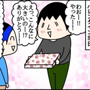 2022/02/15 バレンタインにビッグな愛を このブログは、私くま子(3人目妊娠中)・旦那(タカシ)娘(小4/マルコ) 息子(年長/イチオ)の日常漫画です👨👩👧👦気が付けば手に持っていたビッグサイズのチョコレート!自分も食べたいという欲がどうしても我慢できず!!😂カラフルなチョコレートがたくさん箱に入って