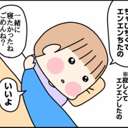 2026/01/27 寝る前の語り このブログは、私くま子・旦那(タカシ)娘(マルコ/中学生)長男(イチオ/小学生)次男(ミツオ/3歳9ヶ月)の日常漫画です🏠一緒に寝られなかった日がありまして、翌日一緒に寝たかったよ、寂しくてエンエン泣いたよと教えてくれました😢しばらくずーっと言ってましたがもうずーっ