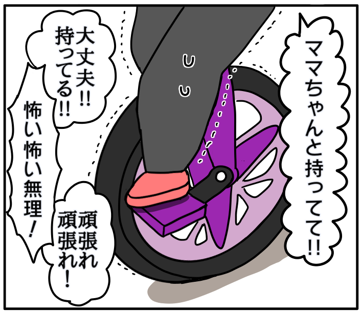 ある時から、片手に父、もう片手を母が持ってサポートしてくれるようになったんですが、その後すぐに乗れるようになりましたよ!