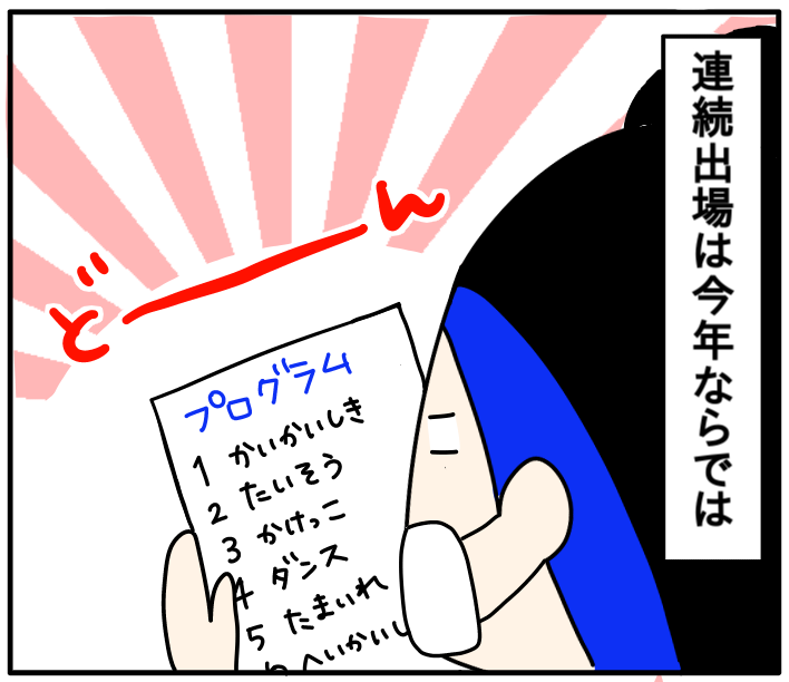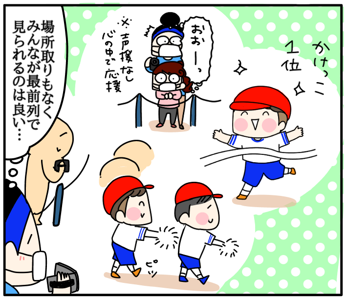 年中さんの運動会 2020/10/19 カテゴリ:イチオ5歳 このブログは、私くま子・旦那(タカシ)・娘(小3/マルコ)・息子(5歳/イチオ)の日常漫画です🌼運動会の連続出場は今年ならではですね😂👏かけっこもダンスも玉入れも頑張っていました!😊😊👍 こんな時期なので先生方も色々と大変だったと思うんですがたくさんの工夫が凝らされた運動会、とっても良かったです😊👍 「イチオ5歳」カテゴリの最新記事 < 前の記事次の記事 > コメント コメントフォーム 名前 コメント 記事の評価 リセット リセット 顔 星 情報を記憶 コメントを投稿する
