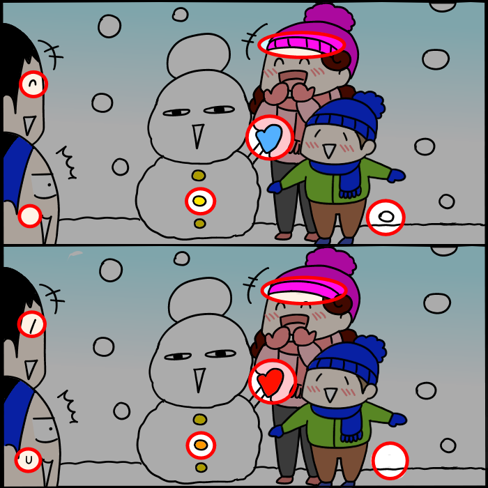 新年のご挨拶2021 2021/01/01 あけましておめでとうございます …もう元旦も終わろうとしてますね!😅早い!今年もよろしくお願いします~!!!☺️☺️🙏☆おまけ☆ 子ども達にやってもらったところ2人ともちょっと苦戦してましたが😁見つかりましたでしょ~うか😆 ちょっとした時間にぜひぜひ(´∇`)お正月の様子はまた次回、漫画で描いていきたいと思います😊◇🔶◇🔶◇🔶◇🔶◇🔶◇🔶◇🔶◇🔶◇2021年が皆様にとって素晴らしい一年になりますように☺️🎍◇🔶◇🔶◇🔶◇🔶◇🔶◇🔶◇🔶◇🔶◇ カテゴリなしの他の記事 < 前の記事次の記事 > コメント コメント一覧 (2) 2. ごっちゃん 2021/01/01 23:43 三ヶ所しか見つからなかった⁉️ 0 kumahahamoyou がしました 1. な 2021/01/01 22:46 マルコちゃんの帽子のとこが最後までわからなかったです! かわいいし適度な頭の体操になりました☺️ 0 kumahahamoyou がしました コメントフォーム 名前 コメント 記事の評価 リセット リセット 顔 星 情報を記憶 コメントを投稿する
