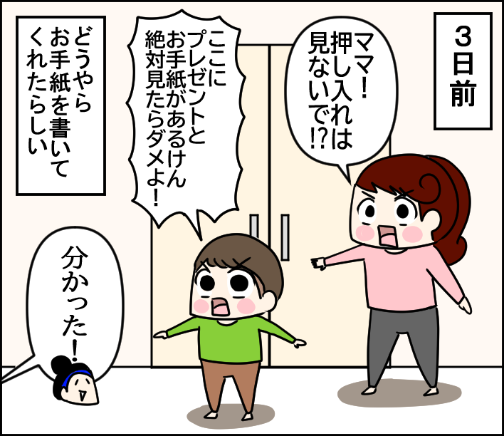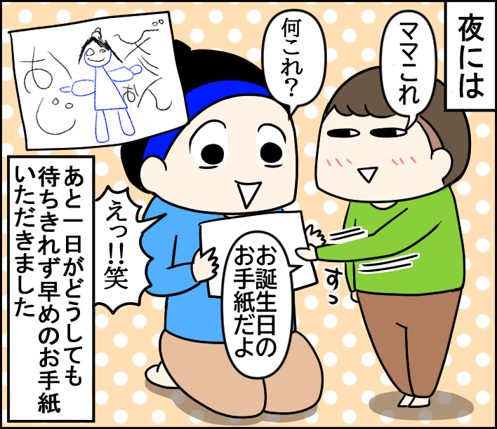 母の誕生日前に溢れ出る子ども達の可愛さ🎁 2021/03/04 カテゴリ:くま母のこと 実は先月、私の誕生日がありまして。今年は誕生日がちょっと楽しみだったんですよね😁そのワケはコチラ↓↓ ↑私よりワクワクしていたマルコまずは誕生日前日までの様子を描きました!それではどうぞ~☆誕生日前だけど可愛さと面白さが止まらない😂これでも十分嬉しいのですが次回は当日の様子を描きたいと思います😁続きはコチラ↓↓ LINEで更新通知が届きます↓旦那バースデーの時の話もぜひ☆ 「くま母のこと」カテゴリの最新記事 < 前の記事次の記事 > コメント コメント一覧 (10) 10. すずめ 2021/03/05 11:01 かわいいかわいいかわいいかわいいっ!😍😍😍 0 kumahahamoyou がしました 9. すずめ 2021/03/05 11:01 かわいいかわいいかわいいかわいいっ!😍😍😍 0 kumahahamoyou がしました 8. ぺこ 2021/03/05 02:22 お誕生日おめでとうございます🎂💕 お子様方に愛されていて羨ましいです🥰 0 kumahahamoyou がしました 7. やせがえるやせがえる 2021/03/04 22:57 ほんとにいい家族! うちは小1と年中の兄弟ですが、そういうのがまったく無くて、正直うらやましいです。 私の育て方がいけないんです(´д`|||) 0 kumahahamoyou がしました 6. にいな 2021/03/04 22:02 はじめまして!いつも楽しく拝見しています。 明るくて楽しいファミリーのすっかりファンになってしまいました( ᵒ̴̶̷᷄◡̶͂ᵒ̴̶̷᷅ ) まだ息子はゼロ歳ですがイチオ君みたいな子になって欲しいなぁ~と思って見ています。 これからも応援しています♥ 0 kumahahamoyou がしました 5. みみ 2021/03/04 21:17 可愛い🥰 マルコちゃんとイチオくんから溢れ出る愛にほっこり☺️ 0 kumahahamoyou がしました 4. くま母 2021/03/04 20:36 >>ちゃんあやさん 一字一句に同意でございます🥺感謝… 0 kumahahamoyou がしました 3. くま母 2021/03/04 20:35 >>すずさん 普通〜にそこに置いてあるの本当笑った😂 0 kumahahamoyou がしました 2. ちゃんあや 2021/03/04 20:35 ママの事を想ってプレゼントを選び、ママの事を想って絵を書く。。胸いっぱい幸せですよねー🍀 0 kumahahamoyou がしました 1. すず 2021/03/04 20:26 待ちきれないイチオくんが可愛い😆 けど、むき出しで放置w 0 kumahahamoyou がしました コメントフォーム 名前 コメント 記事の評価 リセット リセット 顔 星 情報を記憶 コメントを投稿する