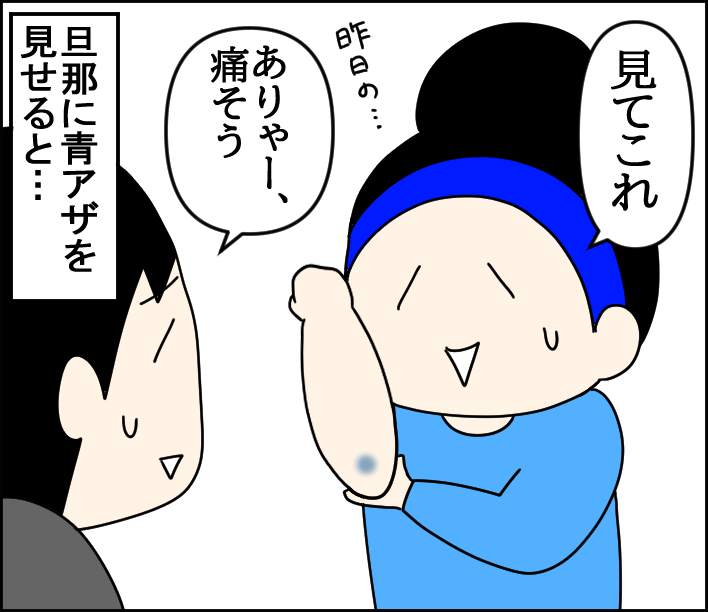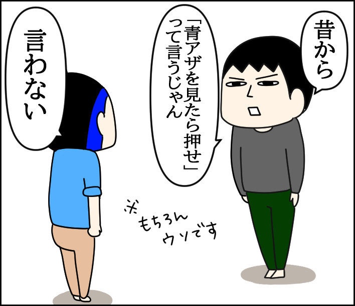青アザ見たら自分のでも、人のでも押したくなります😆👍