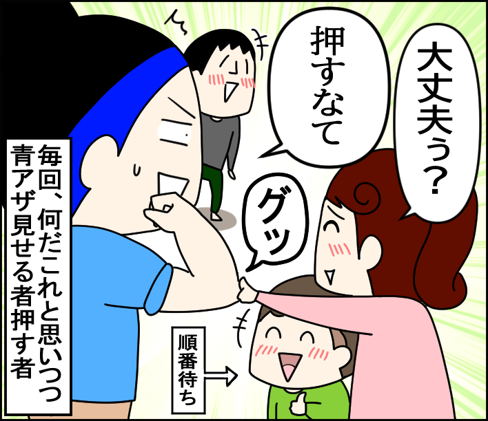 なので、今でも子供の青タンも職場の人の青タンも、見せられたら、そこを押さないという選択肢は無いのです!!笑