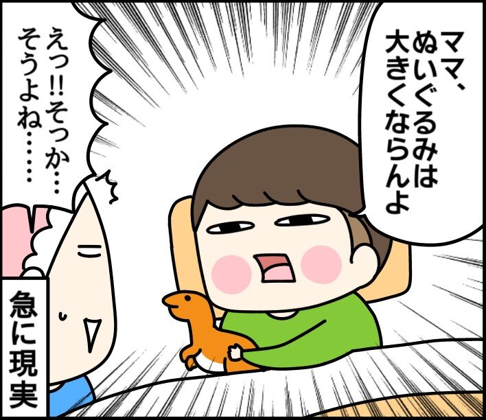 きょうりゅうを育てる6歳 2021/12/23 カテゴリ:イチオ6歳 このブログは、私くま子(3人目妊娠中)・旦那(タカシ)娘(小4/マルコ) 息子(年長/イチオ)の日常漫画です👨👩👧👦寝る前のゆる~い会話でした☺️最近、ぬいぐるみと寝ることが減ったイチオ氏。思い出したかのように一緒に寝て育てることの大変さを語っちゃってました😌3月の状態がこちら☆↓↓↓ 「イチオ6歳」カテゴリの最新記事 < 前の記事次の記事 > コメント コメント一覧 (4) 4. Daisy 2021/12/24 05:07 題名(?)を見て、いちお君『きゅうり』を育てるようになったのね☺️って思って、途中まで、どこで『きゅうり』が出てくるのかな?って勘違いしてました😅😅 0 kumahahamoyou がしました 3. そーまま 2021/12/23 23:43 ぃいーー癒されたぁあーー! この家族好きーー(♡'w'♡) 0 kumahahamoyou がしました 2. kunfumusume 2021/12/23 20:54 ふわふわ〜、幸せ〜❣️ 0 kumahahamoyou がしました 1. ななしゃん 2021/12/23 18:37 設定ふわふわ〜🥰 ぬいぐるみだけに🥰(笑) 0 kumahahamoyou がしました コメントフォーム 名前 コメント 記事の評価 リセット リセット 顔 星 情報を記憶 コメントを投稿する