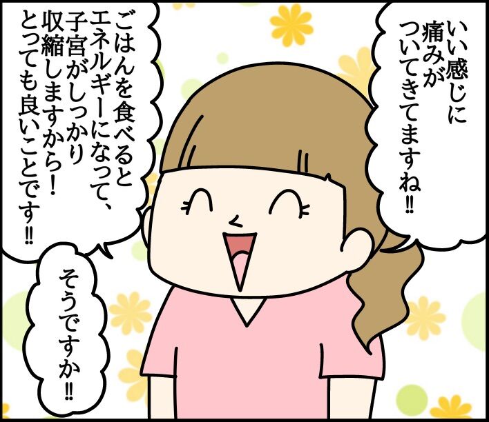 ご飯食べるとお産進みますよね!私も朝ごはんの後あれよあれよと進み、あっという間に産まれました(笑)