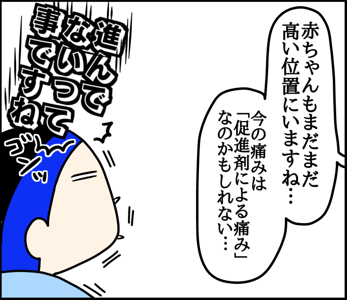 促進剤は使ってませんが、子宮口の開きが途中までゆっくりで「こんな痛いのにぃぃぃ!!もう絶対産めない」って思ってました。産めましたが(笑)
