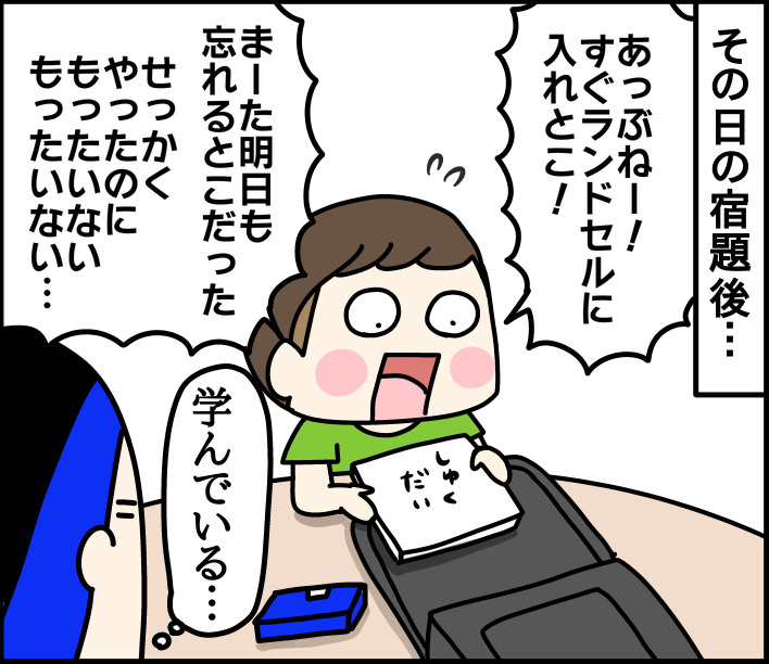 あの日以来、宿題後はせっせとランドセルに