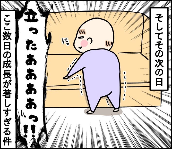 つかまり立ちをしたので