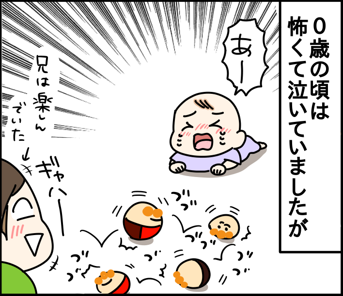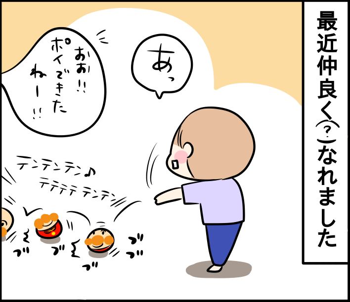 一歳0ヵ月の息子、初めて見せた5ヵ月くらいの時は、泣かずにじっと見つめてる感じでしたが、今は親が投げずに軽く叩いて動かしてるの見て、真似して動かそうとしています✨そしてTikTokで出てくる赤ちゃんのブルブルアンパンマンの反応動画見せると「同じじゃん」と言いたそうに笑って自分のをさがし始めます😊
