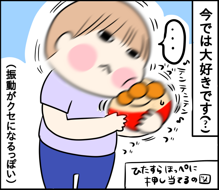 最初は怖がってましたが慣れると投げつけてほっぺに押しつけてましたw