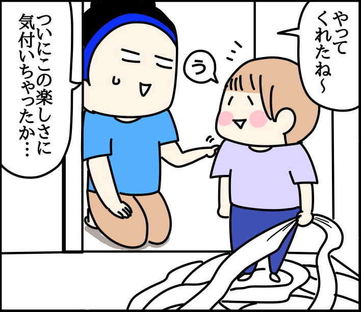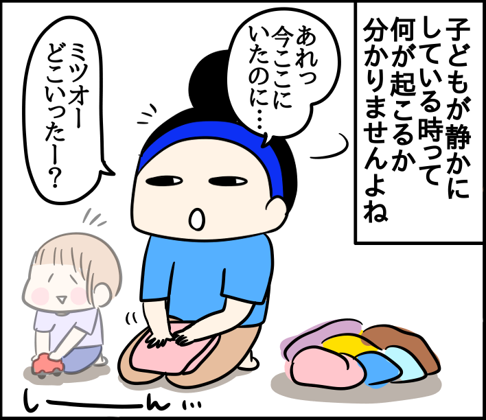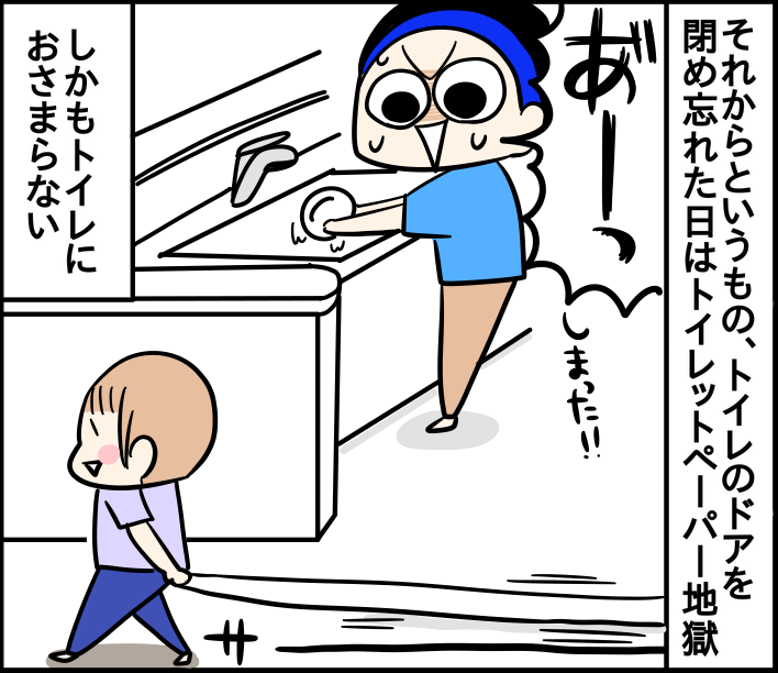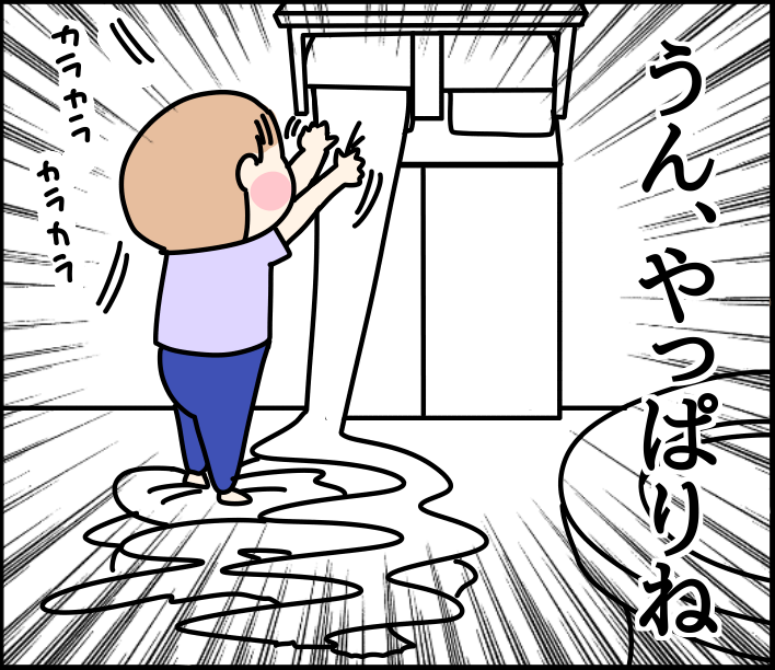 トイレットペーパー出し出し期 2023/06/26 カテゴリ:ミツオ一歳二ヶ月 このブログは、私くま子・旦那(タカシ)娘(マルコ/小学生)長男(イチオ/小学生)次男(ミツオ/1歳2ヶ月)の日常漫画です🏠トイレットペーパー出し出し期、実は上2人は全然無くてミツオだけが出し出ししました🙌ただ出すだけじゃなく持って家中散歩したりしたり細かくちぎったり😂なかなかカオスな状態wそして最近はそれをせっせっと使う日々です🧻コチラも是非☆ 「ミツオ一歳二ヶ月」カテゴリの最新記事 < 前の記事次の記事 > コメント コメント一覧 (7) 7. 私 2023/06/28 15:28 トイレットペーパーは、おしり拭きと違って乾かないので、あーまたやってるわと余裕で見てられます😂 0 kumahahamoyou がしました 6. うちなんちゅ 2023/06/26 16:56 うちの末っ子は、便器の中に三女ごとINしてました…💧 それ以降、トイレのドアは必ず閉めるように家族全員に通達しました!!! 0 kumahahamoyou がしました 5. 祐美 2023/06/26 15:01 それに気づくとは目ざとい(笑) みつおくんは賢いんだなぁ😂♥️ 0 kumahahamoyou がしました 4. 元に戻すのを諦めた母ちゃん 2023/06/26 14:51 やってたやってた!懐かしい。 上の子はティッシュ、下の子はトイレットペーパー。ティッシュは根気よく使っていたけど、トイレットペーパーは大量に引き出した後、トイレに入れて詰まらせるというおまけ付きでした(^-^; 0 kumahahamoyou がしました 3. ななせ 2023/06/26 14:31 うちの子はトイレットペーパー出し出しはほとんどしませんでしたが、ティッシュペーパーとウェットティッシュはめちゃくちゃやられました(^_^;) そして私は勿体ないと思いつつも面倒臭くて出されたやつ全部捨ててたので、くま母さん使うんだ・・・!! とびっくり&尊敬しています、笑 0 kumahahamoyou がしました 2. 名無し 2023/06/26 13:56 我が3歳の娘 トイトレを開始するのもあり 多少 トイレットペーパーをカラカラしても 怒らないようにしてますが… 量にもよりますよね(^-^; 楽しいのかな… 大人がイヤだと思うことを 絶妙にいたずらしてくる子供達( ̄▽ ̄;) 0 kumahahamoyou がしました 1. ケセラセラ 2023/06/26 13:50 めっちゃ笑いました♡ でも 我が子はやらなかったですよ~ 人それぞれなんすね🚽 0 kumahahamoyou がしました コメントフォーム 名前 コメント 記事の評価 リセット リセット 顔 星 情報を記憶 コメントを投稿する