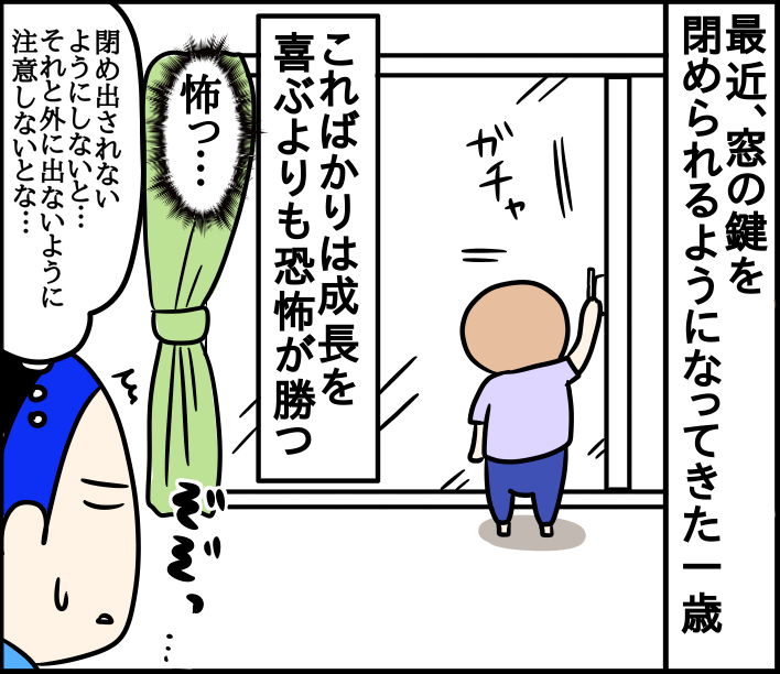 私も、息子が1歳の時、マンションに住んでいてベランダに洗濯物を干していたら鍵締められました😓