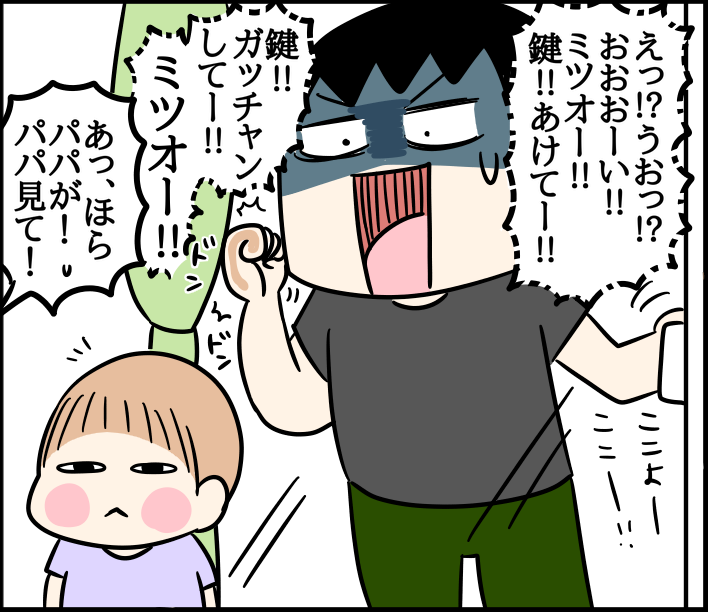 結局動かずただパパを眺めるミツオでした。。