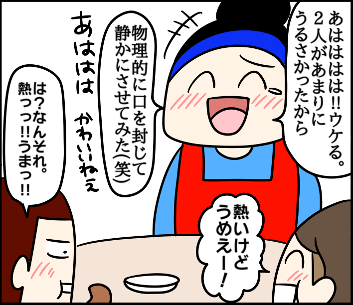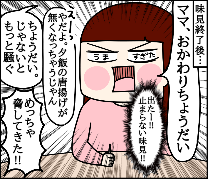 姉弟喧嘩を強制終了してみた 2023/10/20 カテゴリ:マルコ小学生イチオ小学生 家族紹介はコチラ! 唐揚げの威力は凄まじい!!!🙄味見のおかわりの意味⬇️ 旦那流強制終了はコチラ⬇️ こちらもぜひ✨ 「マルコ小学生」カテゴリの最新記事 「イチオ小学生」カテゴリの最新記事 < 前の記事次の記事 > コメント コメント一覧 (9) 9. み~ちゃん 2023/10/21 18:34 親はあの手この手使っても子供がその上を行く 知恵が付いて成長してますね~ 0 kumahahamoyou がしました 8. まぁ 2023/10/21 12:51 私も5年3年1歳の子がいるし広島県民なので、方言がでてくるとなんか嬉しいです(*´艸`)笑 0 kumahahamoyou がしました 6. K 2023/10/20 23:36 私を含めて4兄妹だったので、唐揚げ1つの大切さ分かります!笑 お口封じの味見には、目の前で1つに楊枝を2本刺して、目の前でパッカーンと包丁で切って“はい、どうぞ”だと、火の通りも確認出来る上に最初の被害が1つで。オカワリしても2つで済むのかなぁ?と思いました!笑 ‥というのも同居していた祖父の口癖が『半分こ』だったもので、何か美味しい物があれば必ず誰かと分け合い、咀嚼しながら目を合わせて『美味しいね〜!』がセットでありたいと思っているんです。笑 またKY長文ゴメンナサイ〜〜〜 揚げたての唐揚げ食べたい!!(我が家では揚げ物ほぼしないので尊敬します!) 0 kumahahamoyou がしました 7. くま母 2023/10/21 00:12 >>6 え、天才すぎます😭😭😭‼️そして心温まるお話、ありがとうございます🥹 0 kumahahamoyou がしました 5. ︎︎はれ 2023/10/20 18:22 ごめんなさいwww ミツオ、夕寝中が ミツオタ、寝中かと思ってミツオタ、、、? なんかあだ名、、?ってなってましたwww 0 kumahahamoyou がしました 4. やせがえる 2023/10/20 17:10 なんで子どもってあんなに唐揚げ好きなんでしょうね😁 0 kumahahamoyou がしました 3. おっちょい 2023/10/20 15:25 すごい!ついつい間に入ってまた喧嘩勃発しちゃうけど、これは平和でいいですね♪食べ物で仲直りはかわいい〜 0 kumahahamoyou がしました 2. たまかな 2023/10/20 14:35 口封じの作戦、真似させてもらいます!笑 0 kumahahamoyou がしました 1. コスモス 2023/10/20 14:06 物凄い脅し!🤣 0 kumahahamoyou がしました コメントフォーム 名前 コメント 記事の評価 リセット リセット 顔 星 情報を記憶 コメントを投稿する