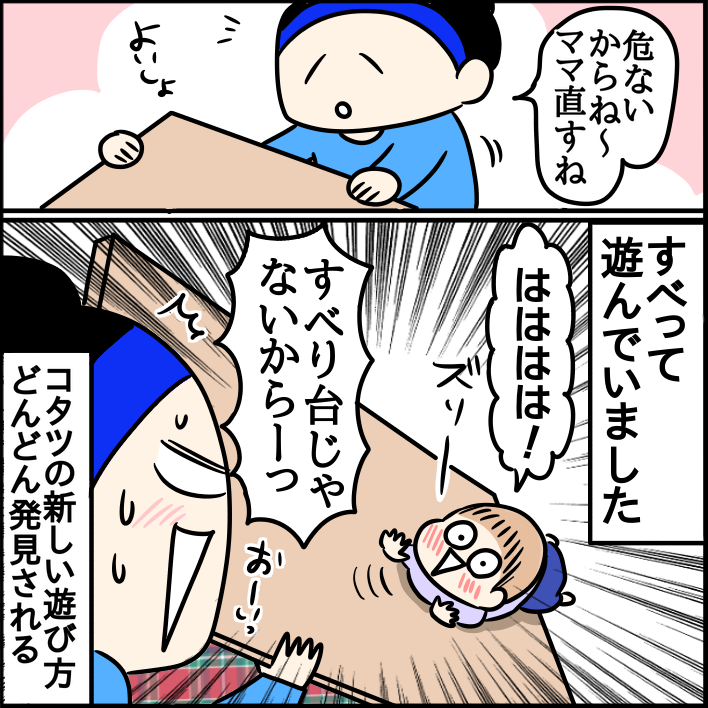 すごいぞ!!1歳とコタツ 2023/11/16 カテゴリ:ミツオ一歳七ヶ月 このブログは、私くま子・旦那(タカシ)娘(マルコ/小学生)長男(イチオ/小学生)次男(ミツオ/1歳7ヶ月)の日常漫画です🏠1歳とコタツ、入っては爆笑、滑っては爆笑してた😂コタツの使い方よ!!!ミツオのやんちゃが止まらないぜ… こちらもぜひ☆ 「ミツオ一歳七ヶ月」カテゴリの最新記事 < 前の記事次の記事 > コメント コメント一覧 (17) 17. わーこ 2023/11/20 09:13 うちの息子1歳10ヶ月もまっっったく同じ事してゲラゲラ笑って遊んでました! 同じすぎて思わずコメントしました。 いつも読んでます頑張ってください。 0 kumahahamoyou がしました 15. ざくろん 2023/11/17 20:49 動く天板が、動く天使に見えた😍 ミツオくんめちゃくちゃ遊びの天才ですね!親は大変ですがね😂 子供ってオモチャじゃないものの方がハマりやすい?!😂 0 kumahahamoyou がしました 16. 通りすがりのおばさん 2023/11/17 21:16 >>15 同じく動く天使に見えて 「愛されてる子だなぁ~」とほのぼのして読み続けてたらなんか違うと言うことに気付きました笑 0 kumahahamoyou がしました 14. その辺のおばさん 2023/11/17 11:28 もーーー可愛すぎます💕 0 kumahahamoyou がしました 13. A87 2023/11/17 10:26 めっちゃ可愛いですね^_^ ただ、知り合い伝いに聞きましたが、ソファーから飛んだ際に着地点あたりにこたつがあって頭を強打し、そのまま救急搬送された子供がいると聞き、我が家は子供がある程度大きくなるまでこたつや小さなテーブルはだしませんでした。 0 kumahahamoyou がしました 12. きら 2023/11/17 10:08 うちも1歳になってすぐのある日、天板落としてすっぽり入ってて、可愛くて可愛くてたまらなかったなぁ~!やり始めてすぐに引っ越しになって、床暖の家になり、こたつバイバイになってしまったので、見られなくなっちゃって残念でした~(TOT 0 kumahahamoyou がしました 11. こー 2023/11/16 20:21 すみません、さっき途中で送信しちゃいました😂 今こたつでゴロゴロしながら読んでました☺️ 何でも遊びに出来るんですね😁 0 kumahahamoyou がしました 10. こー 2023/11/16 20:17 かわいい😊 今こたつでごろ 0 kumahahamoyou がしました 9. よよ 2023/11/16 19:06 わたしも子どものころ、こたつで滑り台してたなぁ〜 あ、アラフォーです✋ 0 kumahahamoyou がしました 8. 2歳の姪っ子ちゃんが可愛くて仕方がないおじちゃん(27歳) 2023/11/16 18:36 静かだなぁ、と思ったら中で脱水症状…なんてことも考えられますね… トイレ等で目を離すときは電源オフですな 2歳の姪っ子ちゃんが実家来たら、おじちゃんは常にそばにいて警戒する所存ですぞ! 0 kumahahamoyou がしました 7. r 2023/11/16 18:30 この遊び、1歳ではなく保育園くらいの時にやりまくってたのを記憶の奥底で見つけた41歳がここにいますw 0 kumahahamoyou がしました 6. もさみそ 2023/11/16 17:41 あはははは🤣 うちの子より2ヶ月早いミツオ君のやんちゃぶりが、その後うちにも訪れるかと思うと笑ってられないんだけど、そのうちやりそうだな〜と思っていつも見てます(笑) うちも天板動くのが面白いらしくて、ズラしては、ズラしたこたつ布団と天板の間に手を入れたり、おもちゃ入れたりしてます😂さすがに天板が落ちるほど動かない(片側壁につけてるから)からか、入ることはなかったです😂 0 kumahahamoyou がしました 5. 子離れ中 2023/11/16 17:29 一度はやるやる!天板滑り台笑笑 自分や子供の記憶がよみがえりました。 懐かしすぎる。 ありがとう! 0 kumahahamoyou がしました 4. 平成元年ハタチ 2023/11/16 15:54 スッポリしてる子ども初めて知りました。 すごい発想力というかと発見力! 私も小さい時に母のヘアブラシをマイクにしてコタツの上に立って歌ってました。ステージ気取りなので座布団を曲げて横に置いて階段風にして上がります。 天板ずらして滑り台にして2歳下の弟と滑り台も当たり前のように毎日してました。 天板裏が緑の布張りでトランプや麻雀が出来る仕様の昔のコタツご存知ですか?天板の縁を囲んだ枠が付いてて、4歳と2歳が毎日滑り台してたら枠が外れて手では戻せないので親にめちゃ怒られました。 あ、50年も前の古い古いハナシです(^_^;) 子どもと言う生き物はいつの時代も同じです(笑) 0 kumahahamoyou がしました 3. どりんこ 2023/11/16 15:42 うちの親が「子供が言うこと聞くまで、コタツは何かと危ないから出さない方がいい」というアドバイスをしてくれました。 出してないですが、これ読んで、めちゃくちゃ沁みました😅 0 kumahahamoyou がしました 2. まちゃ 2023/11/16 15:38 あはは(笑)めっちゃめんこい😄何回もやってそう(笑) その場にいたかった。 0 kumahahamoyou がしました 1. yu- 2023/11/16 15:37 うちの子もコタツの天板をずらしてすっぽりするのが好きです😂 こたつ布団のサイズが小さいのですっぽりされるとすぐズレて隙間が…😅 0 kumahahamoyou がしました コメントフォーム 名前 コメント 記事の評価 リセット リセット 顔 星 情報を記憶 コメントを投稿する