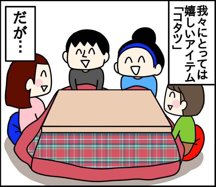 ただ、知り合い伝いに聞きましたが、ソファーから飛んだ際に着地点あたりにこたつがあって頭を強打し、そのまま救急搬送された子供がいると聞き、我が家は子供がある程度大きくなるまでこたつや小さなテーブルはだしませんでした。