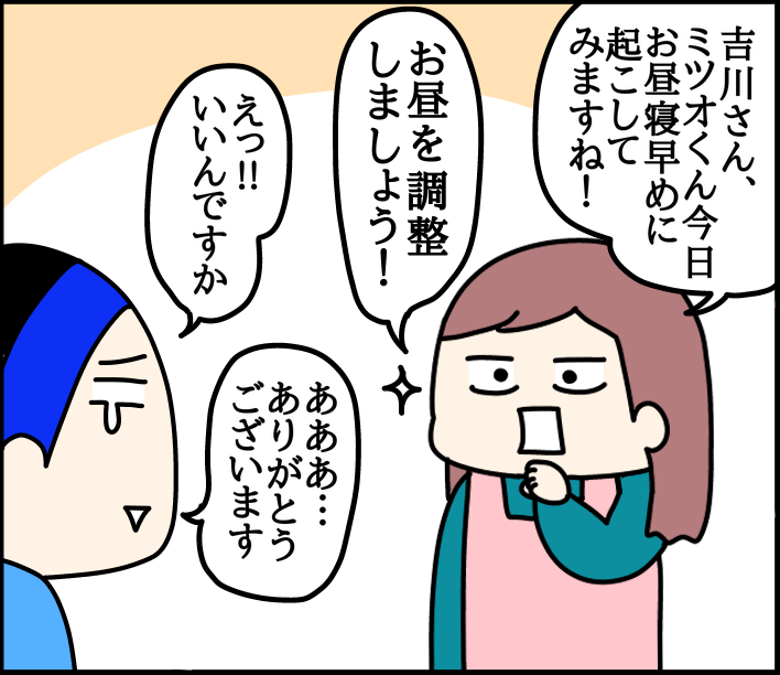 うちも今、保育園でお昼寝ちゃんとできるように先生が頑張ってくれています…