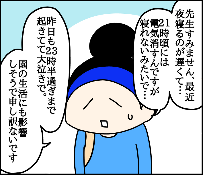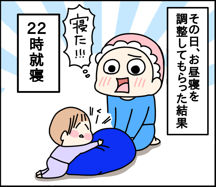 我が家は保育園でお昼寝ができないらしくて(ママがいないと寝れない、おんぶ紐だと寝るけどおろすと起きる)、疲れすぎちゃって寝る前に泣くのかなと思って…