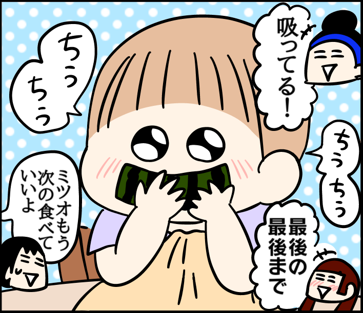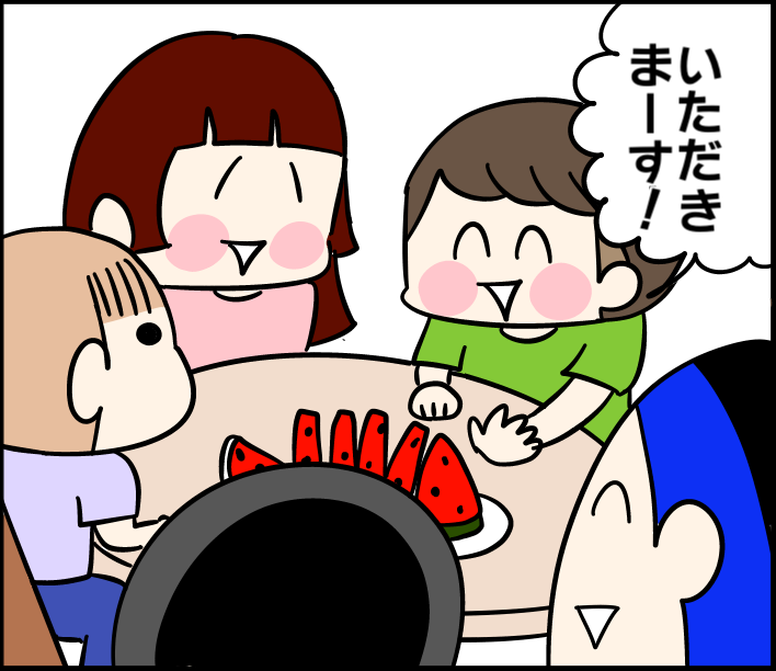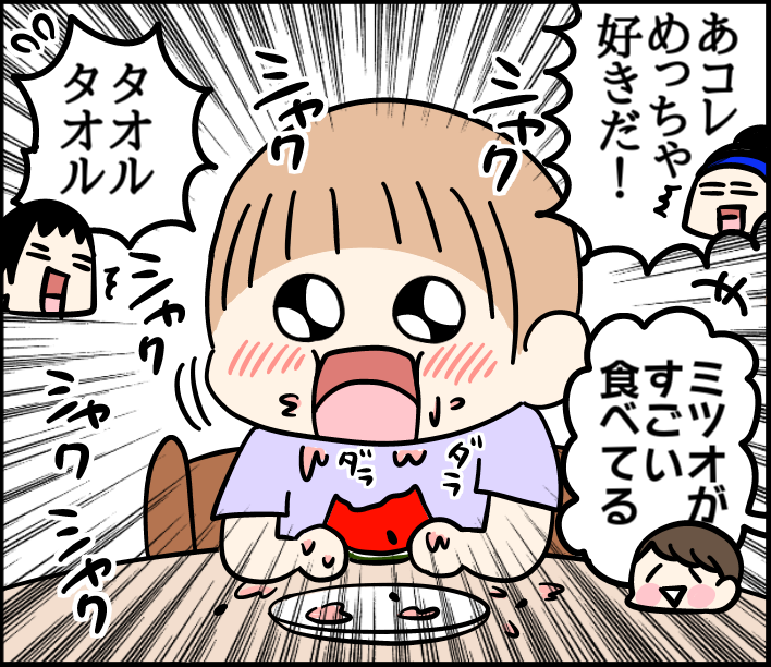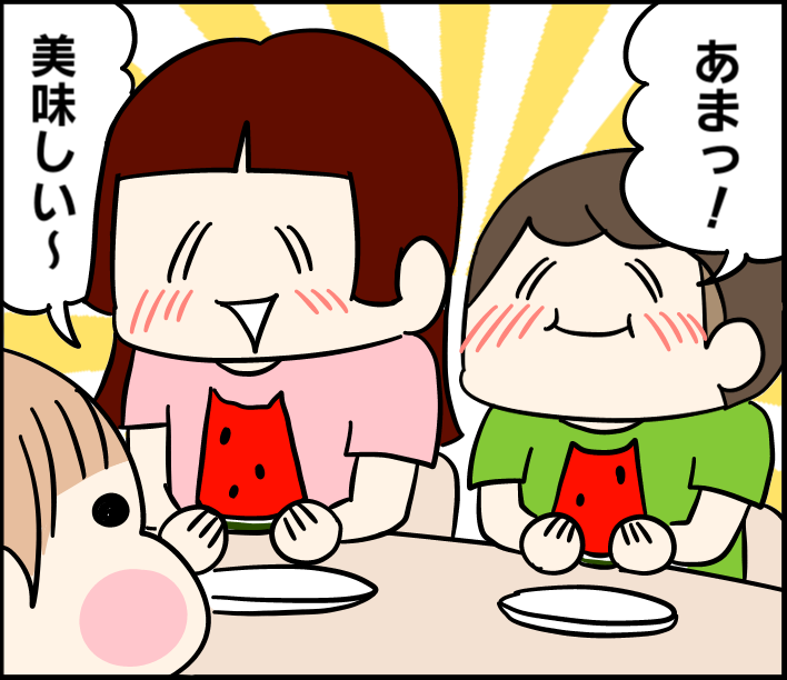スイカ好き 2024/07/24 カテゴリ:家族5人の話ミツオ2歳3ヶ月 このブログは、私くま子・旦那(タカシ)娘(マルコ/中学生)長男(イチオ/小学生)次男(ミツオ/2歳3ヶ月)の日常漫画です🏠今年めっちゃ好き‼️😂🍉🍉🍉最後の最後まで食べてました。ちなみにぶどうは苦手で皮むいて潰して遊んでます🍇スイカゲーム↓↓↓ りんご↓↓↓ みかん↓↓↓ 酸味苦手↓↓↓ 「家族5人の話」カテゴリの最新記事 「ミツオ2歳3ヶ月」カテゴリの最新記事 < 前の記事次の記事 > コメント コメント一覧 (5) 5. よっしー☆ 2024/07/31 12:21 どこか旅行にでも行かれてるのですか^^ 夏休みの出来事もご報告待ってます^^ 0 kumahahamoyou がしました 4. なっちゃん 2024/07/26 18:21 ちょっと前からマルちゃんの髪型が姫カット??になってますね! とってもキュート〜 誰か憧れの人が居るのかな?? また漫画にしてほしいです〜 良い週末を〜〜〜(^^)ノ 0 kumahahamoyou がしました 3. m 2024/07/25 01:04 あかねちゃん?っていう虫除けグッズが 蚊に効果あるみたいです✨ ご存知だったらすみません🙇♀️ 0 kumahahamoyou がしました 2. ルンルン 2024/07/24 16:31 うちの子も昔は食べなかったのに3歳で食べるようになりした!味覚が変わるんですかね〜(*^^*) まるちゃんの姫カット可愛いですね♡ 0 kumahahamoyou がしました 1. クリリン 2024/07/24 13:04 長嶋茂雄はスイカの先っちょだけ食べる 0 kumahahamoyou がしました コメントフォーム 名前 コメント 記事の評価 リセット リセット 顔 星 情報を記憶 コメントを投稿する