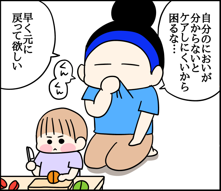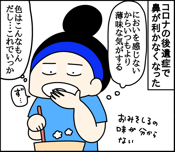 無臭で困る日々 2024/08/01 カテゴリ:くま母のこと このブログは、私くま子・旦那(タカシ)娘(マルコ/中学生)長男(イチオ/小学生)次男(ミツオ/2歳3ヶ月)の日常漫画です🏠ミツオの大にも気付けない日々😅2人きりだと放置しちゃいそうなので度々チェックしなくては…!自分の体のにおいが無臭なのでそれも何気に困るとこ😮💨料理の味もよく分からないし、早く治るといいな~🙄完治まで1ヶ月くらいかかったよー!とコメントで教えてもらったので気長に待ちたいと思います🫠 この匂いも今はお預け… その他においの話 「くま母のこと」カテゴリの最新記事 < 前の記事次の記事 > コメント コメント一覧 (10) 10. ハル 2024/08/04 22:49 コロナの後遺症、亜鉛がいいと病院の先生に言われてサプリ接種していました。それでも復活に一ヶ月以上かかり、色の濃いお椀に入っていると味噌汁とお吸い物の違いもわからないくらいでした〜。 0 kumahahamoyou がしました 9. ちゅん 2024/08/01 18:15 めちゃめちゃ分かる! 私も2年前コロナ後遺症で嗅覚障害がでて、隔離期間中テレワークしていたのですが、オムツゴミ箱置いてる部屋で仕事しても全然平気でした。家族からよくこの部屋で仕事できるねって言われてました笑 0 kumahahamoyou がしました 8. 茂吉 2024/08/01 17:50 私も6月にコロナになったのですが、無臭になり、めっちゃ不安でしたー。 でも鼻の細胞?の入れ替え周期が半月なので、半月後には回復しましたよ〜。 コーヒー、花の香り、ハーブの香りなどを嗅ぐと回復しやすいらしいです。 料理は大変ですが、家族に味見してもらいつつ…。頑張りましょう٩(ˊᗜˋ*)و 0 kumahahamoyou がしました 7. 嗅覚障害困りますよね 2024/08/01 17:00 この暑さなので、自分が臭いか臭くないかわからないのは困るんですよね 洗濯は服の匂いをかいで臭かったら洗う方式のズボラなのでそれが不便でした笑 色々調べると2週間から1ヶ月程度で治る人がほとんどとよく見ます 私の場合は10日程で回復しました 0 kumahahamoyou がしました 6. おまん☆じゅう 2024/08/01 15:27 頭皮のにおいなど気になるお年頃、、わかります。 味覚の話ですが亜鉛のサプリメントはいかがでしょうか?コロナではないけど普通風邪で散々鼻が詰まった後、やっと通るようになった!けど味がしない、分からない!って時に飲みましたら割とすぐ良くなりました。ドラストに大体置いてあります。 0 kumahahamoyou がしました 5. ロコモコ 2024/08/01 13:40 私も3年くらい前に初めてコロナに罹った時嗅覚消え失せましたー!香水の匂いが無臭になったのには驚きましたが、一番ヒヤッとしたのはガスの匂いがしなかったことです。冬だったので鍋をした後出しっぱなしになってたカセットコンロのつまみを末っ子が回していたようで、上の子がなんかくさいと!速攻換気しましたが、匂いがしないって怖いなと思いました。 0 kumahahamoyou がしました 4. あひる 2024/08/01 13:06 頭皮の臭いは頭洗う時の予洗いが不足しているからだそうですよ。NHKの番組で紹介してました。 シャンプー液つける前に。どんぐりころころどんぐりこの歌を2週歌うくらい予洗いしないと臭いは取れないそうです 0 kumahahamoyou がしました 3. れん 2024/08/01 12:34 他のブログで見たのですが、料理に関してはレシピを見て作るといいらしいですよ。とりあえず味付けはレシピ通りの分量にすれば間違いない…とのこと 0 kumahahamoyou がしました 2. わかる 2024/08/01 12:00 私も3週間位分かりませんでした。同じく子供のうんち気が付かず服までいきました…(笑) 1ヶ月無臭なら一度耳鼻科相談も良きです。 0 kumahahamoyou がしました 1. もも 2024/08/01 11:32 私も2年前に家族揃ってコロナに感染したのですが、私だけ鼻がきかなくなってしまい同じように困りました😓 1〜2週間はきかなかったように思います👃 餃子やたこ焼きを食べても味覚は普段通りなので分かるのですが、鼻がきかないとこんなにも味全体に影響を及ぼすのかと驚きました🫢香りが分かるこその味なのだと🍽️ 1〜2週間の間は毎日おソースの香りで戻ったか確認していました😅💦 0 kumahahamoyou がしました コメントフォーム 名前 コメント 記事の評価 リセット リセット 顔 星 情報を記憶 コメントを投稿する