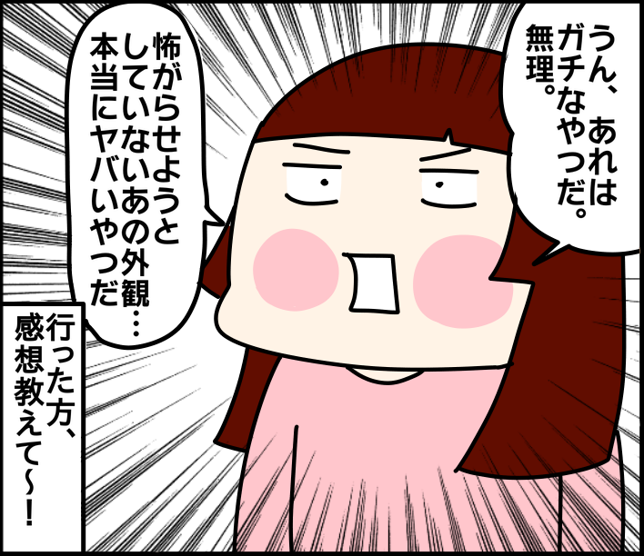 いつもは絶対入らないんですけどその時は大人数で行ってたので乗り入ってしまい、、みんなは最後まで行きましたがわたしはなんか怖過ぎてブルブルして7段くらい登ったところで勢いよく逆走し逃げました🤣