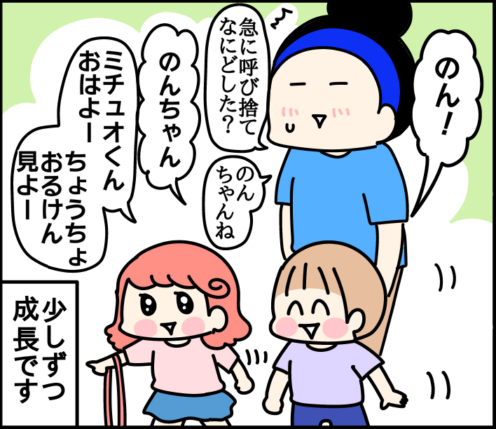 呼び方の幅、広がる 2025/07/08 カテゴリ:ミツオ3歳3ヶ月 このブログは、私くま子・旦那(タカシ)娘(マルコ/中学生)長男(イチオ/小学生)次男(ミツオ/3歳3ヶ月)の日常漫画です🏠自分の事をミツオということはあったけど、急なフルネームが言えるように。よちかわみちゅお、ちゃんちゃい(3歳)と自己紹介ができるようになりました🥹👏その翌日、急にお友達をお名前で呼ぶように。急な呼び捨てには動揺したけど🤣ずっと心配していた言葉、少しずつ成長しています☺️しっかり者ののんちゃん↓↓↓ 「ミツオ3歳3ヶ月」カテゴリの最新記事 < 前の記事次の記事 > コメント コメント一覧 (1) 1. たぬき 2025/07/08 20:19 何人育てても、みんなそれぞれ成長スピードが違うとわかってても不安になることもありますよね🌱 特に小さい頃は昨日よりも今日、今日より明日確実にステップアップしてますもんね! くま母さんいつも漫画楽しませてもらってます(^o^) 応援してます!これからもがんばって下さい😊 0 kumahahamoyou がしました コメントフォーム 名前 コメント 記事の評価 リセット リセット 顔 星 情報を記憶 コメントを投稿する