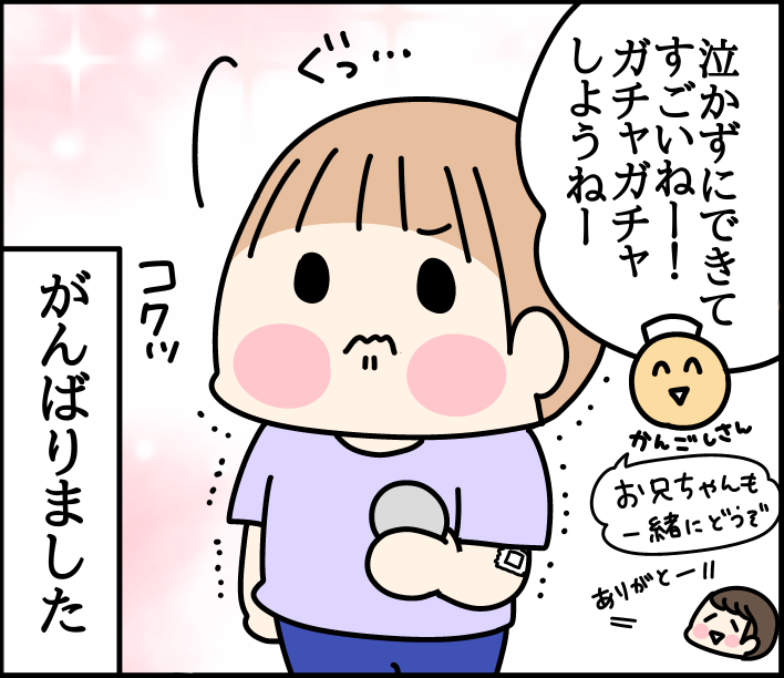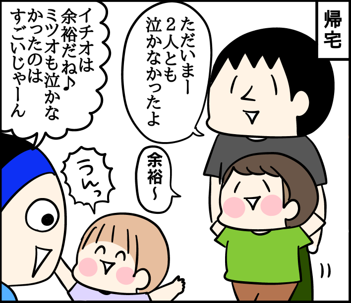長男次男、予防接種へ 2025/07/28 カテゴリ:イチオ小学生ミツオ3歳3ヶ月 このブログは、私くま子・旦那(タカシ)娘(マルコ/中学生)長男(イチオ/小学生)次男(ミツオ/3歳3ヶ月)の日常漫画です🏠おおー👏2回目は私が連れていったんですが、本当に泣かなくてびっくり!一回目はイチオが受けて平気な顔をしていたのを見て耐えていたみたい☺️この日も兄の声援を受け、頑張りました👏 「イチオ小学生」カテゴリの最新記事 「ミツオ3歳3ヶ月」カテゴリの最新記事 < 前の記事次の記事 > コメント コメントフォーム 名前 コメント 記事の評価 リセット リセット 顔 星 情報を記憶 コメントを投稿する