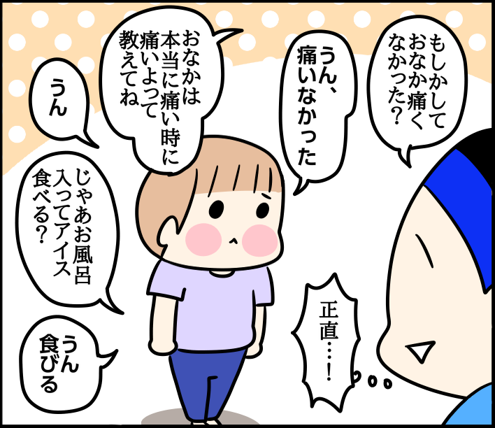 初めての仮病 2025/09/29 カテゴリ:ミツオ3歳5ヶ月 このブログは、私くま子・旦那(タカシ)娘(マルコ/中学生)長男(イチオ/小学生)次男(ミツオ/3歳5ヶ月)の日常漫画です🏠初めての仮病😂タイミングや表情で姉&兄にはバレバレでしたけどね😂 すぐに認めちゃうとこもまた可愛い…☺️お風呂にも入って、アイスも食べて元気に過ごしていました!にしても毎日のお風呂いやー!対策もなかなか難しいですね…!😇 「ミツオ3歳5ヶ月」カテゴリの最新記事 < 前の記事次の記事 > コメント コメント一覧 (3) 3. ぽん 2025/09/29 21:09 うちの双子も、お風呂いやーだったなぁと懐かしくなりました(笑) 我が家は、入浴剤で釣りましたよ~。おもちゃが出てくるやつはコスパ悪いので、バブとかのタブレットのやつの箱を買って、好きなのを選ばせて入ってました。 そろそろ寒くなってくるし、お風呂であったまって欲しいですよね🥺 0 kumahahamoyou がしました 2. まーち 2025/09/29 17:42 うちの3歳の娘も同じこと言ってます笑 ミツオくん、めちゃくちゃ喋れるようになってますね!!きっと溜め込んでたんですね❤️可愛い❤️ 0 kumahahamoyou がしました 1. 2児ぱぱ 2025/09/29 16:41 うちは嫌がる時は氷を袋に入れてお風呂で遊んでます 0 kumahahamoyou がしました コメントフォーム 名前 コメント 記事の評価 リセット リセット 顔 星 情報を記憶 コメントを投稿する