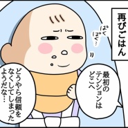 2022/09/17 離乳食初期・野菜を食べる このブログは、私くま子・旦那(タカシ)娘(マルコ/小学生)長男(イチオ/小学生)次男(ミツオ/生後5ヶ月歳)の日常漫画です🏠ちゃんと反応していますw生まれて5ヶ月で…すごいなぁ…単体だと抵抗あるようで、お粥に混ぜるとちょっと進みは良いです👍少しずつ前進で☺️👌こちら